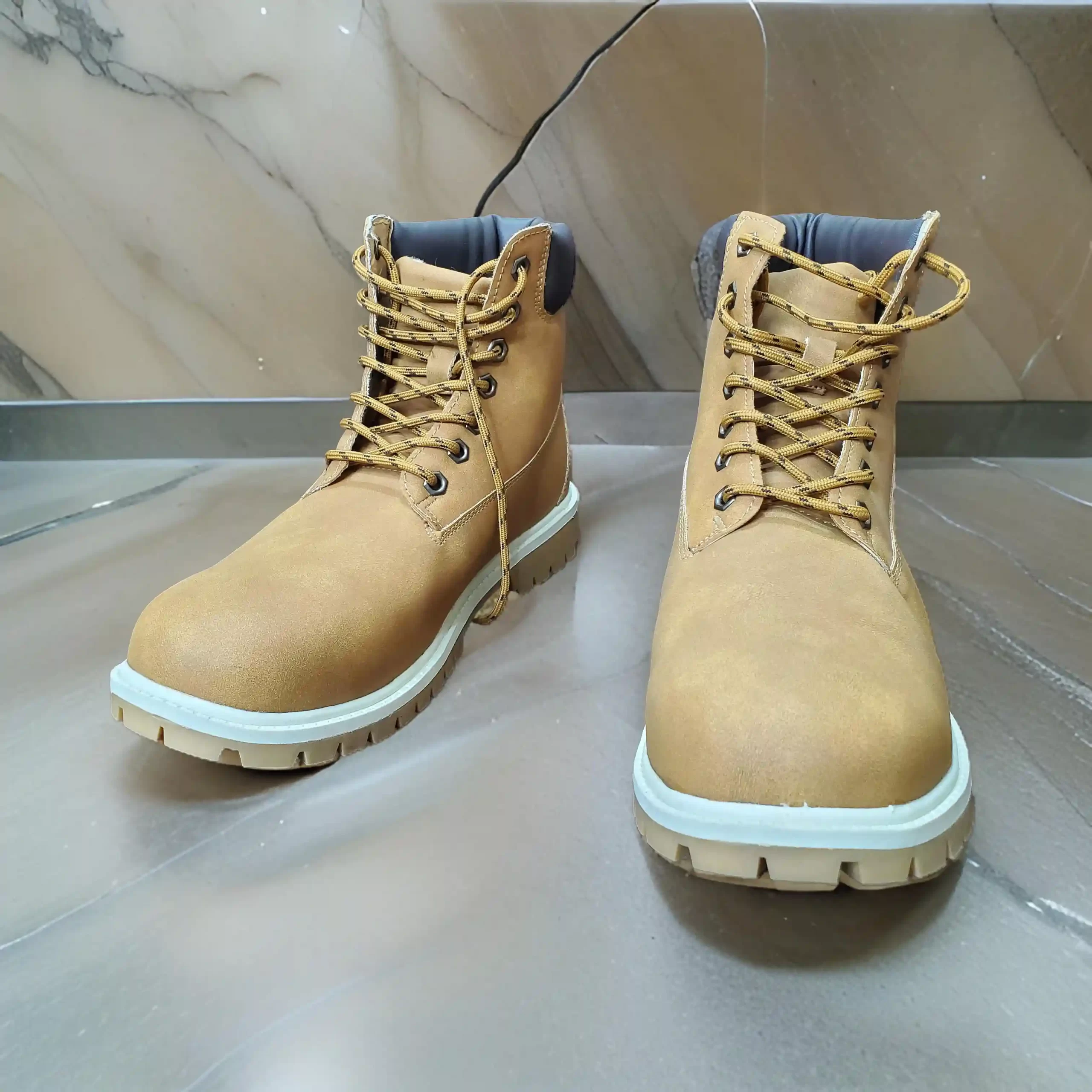 এই স্টাইলিশ এবং টেকসই বুটগুলো তৈরি করা হয়েছে প্রিমিয়াম মানের সিনথেটিক লেদার দিয়ে, যা দীর্ঘস্থায়ী এবং মসৃণ ম্যাট ফিনিশ প্রদান করে। TPR (থার্মোপ্লাস্টিক রাবার) সোলসহ এই বুটগুলো চমৎকার গ্রিপ, নমনীয়তা এবং টেকসই পারফরম্যান্স নিশ্চিত করে, যা শহরের রাস্তায় হাঁটাচলা বা আউটডোর অ্যাডভেঞ্চারের জন্য আদর্শ।